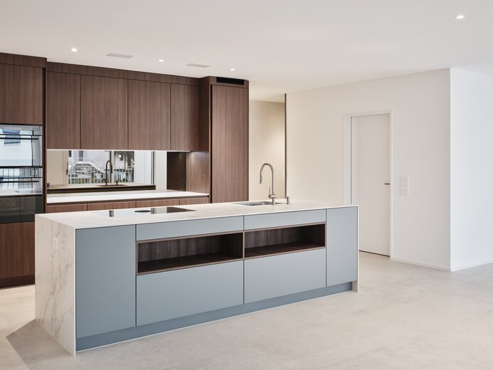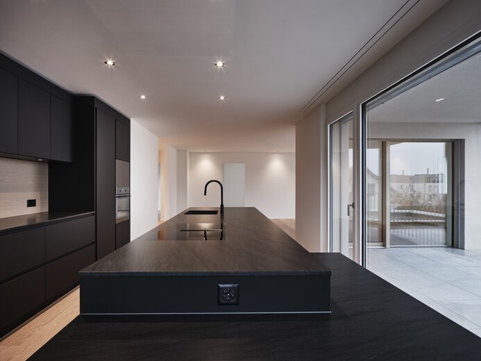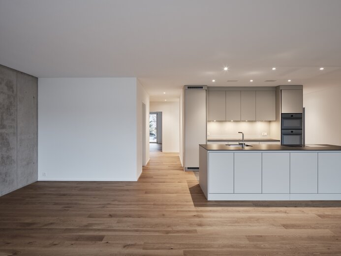 Die moderne, grosszügige Küche lädt zum Kochen und Geniessen ein. Ebenso bieten die Wohnungen reichlich Platz im Freien. Egal, ob Sie sich für eine der 5.5-Zimmerwohnungen mit zwei großzügigen Balkonen entscheiden oder die Vorzüge einer Gartenwohnung mit exklusiv zugeteilter Gartenfläche geniessen möchten, hier haben Sie Raum zum Entfalten.