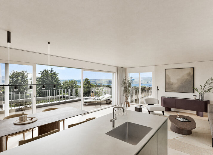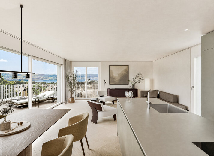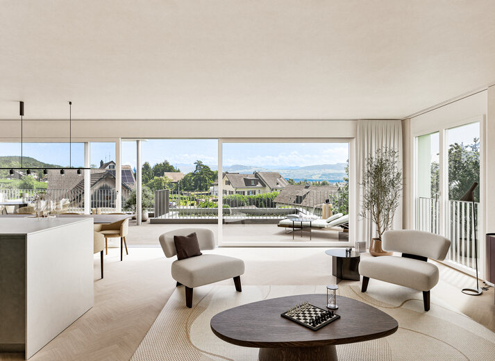 An idyllischer Lage entstehen sieben 4.5 Zimmer Eigentumswohnungen mit wunderbarer Besonnung und Aussicht auf den See oder ins Grüne.
